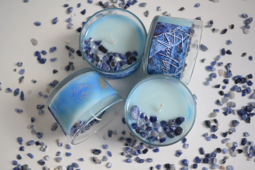 Transforme o seu ambiente com a Vela Sodalita, uma verdadeira combinação de beleza e aroma. Feita com pedras naturais de sodalita, essa vela não é apenas decorativa, mas também proporciona equilíbrio ao seu espaço.